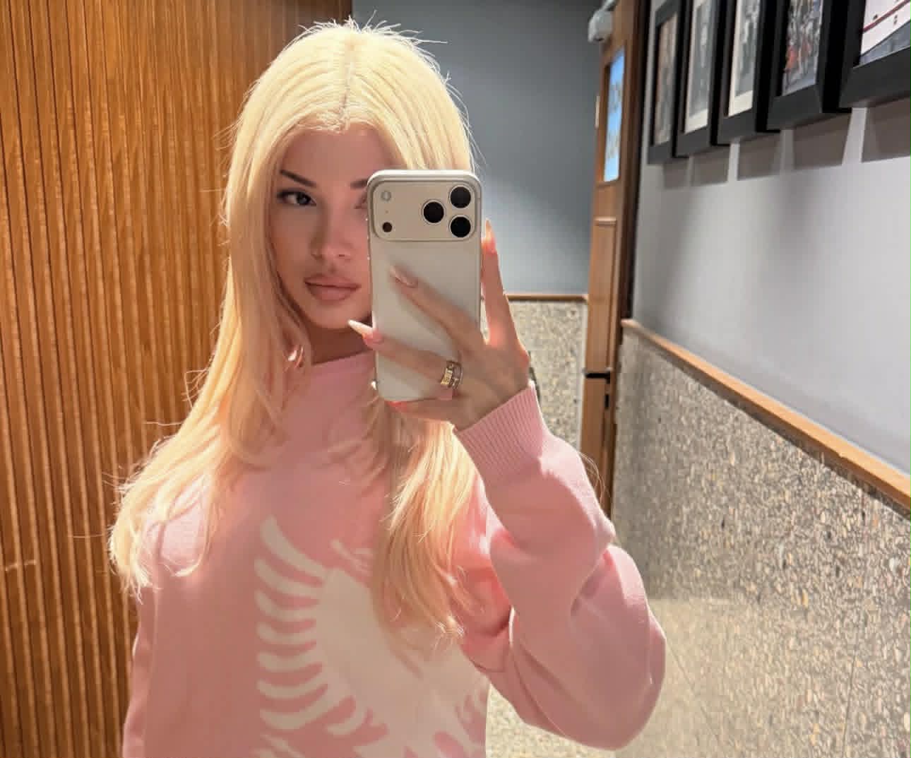 Megjithatë, detaji që na ka rënë në sy këtë herë është që bluza që ajo mban veshur, derisa të stampuar ka shqiponjen dykrerëshe.