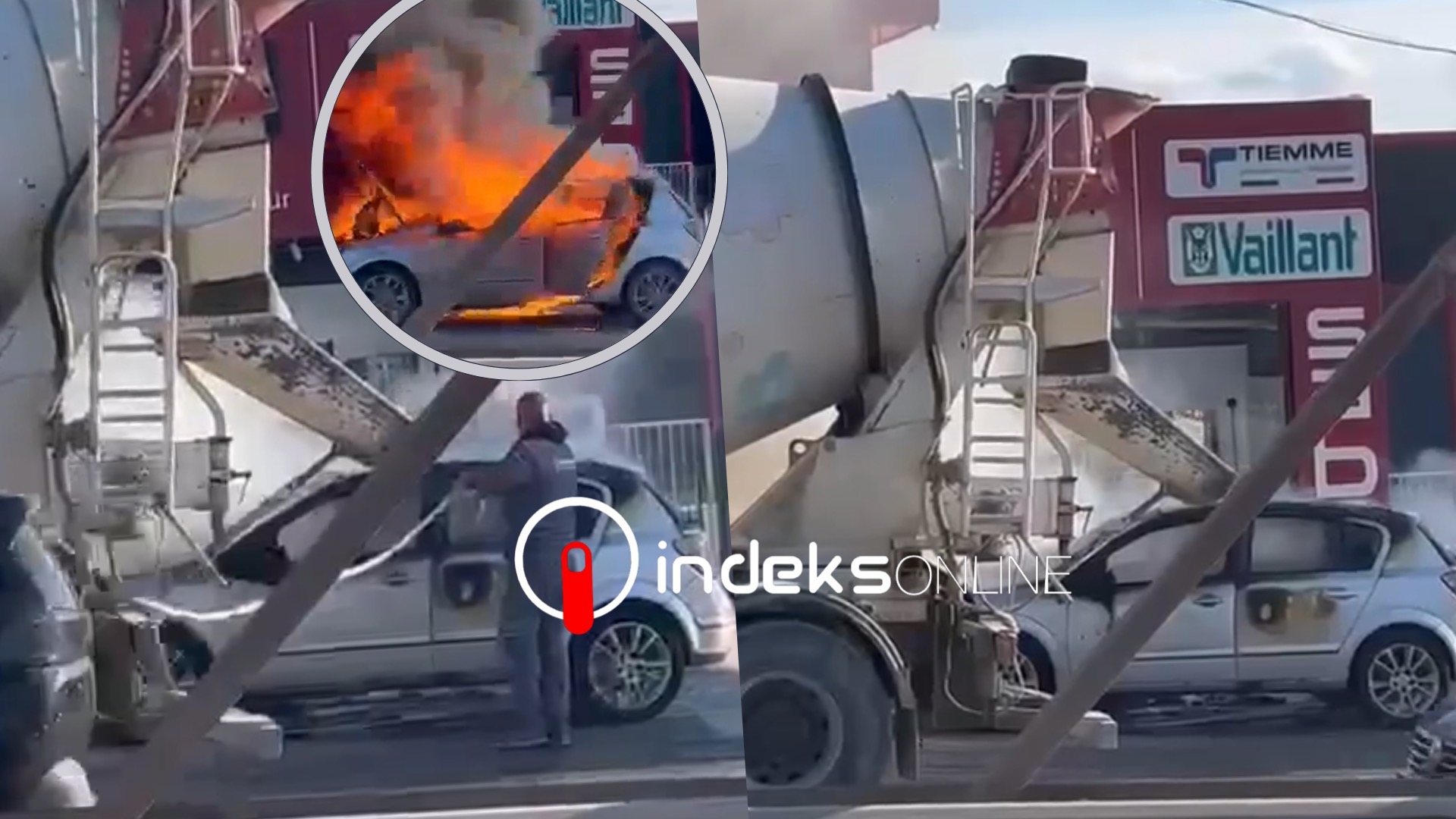 I njëjti, duke kaluar në atë rrugë, ka ndaluar menjëherë mjetin e tij dhe ka ndërhyrë për ta shuar zjarrin në veturë.